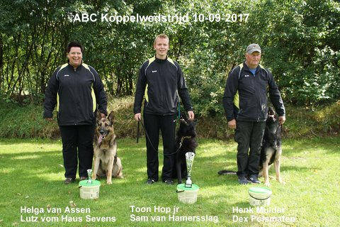 2 combinaties gingen op voor VZH (Hans Smit met Donja Polsmaten en Johan de Raad met Lexus v. Alwilberthof), 1 combinatie voor de IPO 1 deelcertificaten A en C (Hermen Goudbeek met Digo v. Juvenisty), 3 combinaties voor IPO 1 (Toon Hop met Sam v. Hamersslag, Henk Mulder met Dex Polsmaten en Helga van Assen met Lutz v. Haus Sevens.